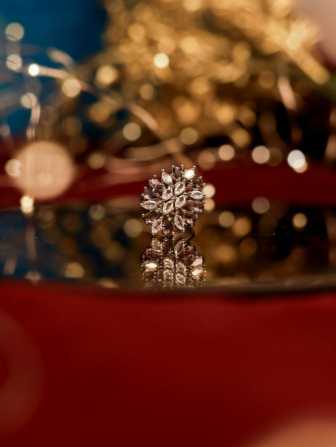 Purple & white stone American Diamond Ring by Suwarnikaa Jewels – A bloom of elegance in sparkling American Diamonds, crafted on Brass/Copper for timeless charm. Redefining Timeless Treasures