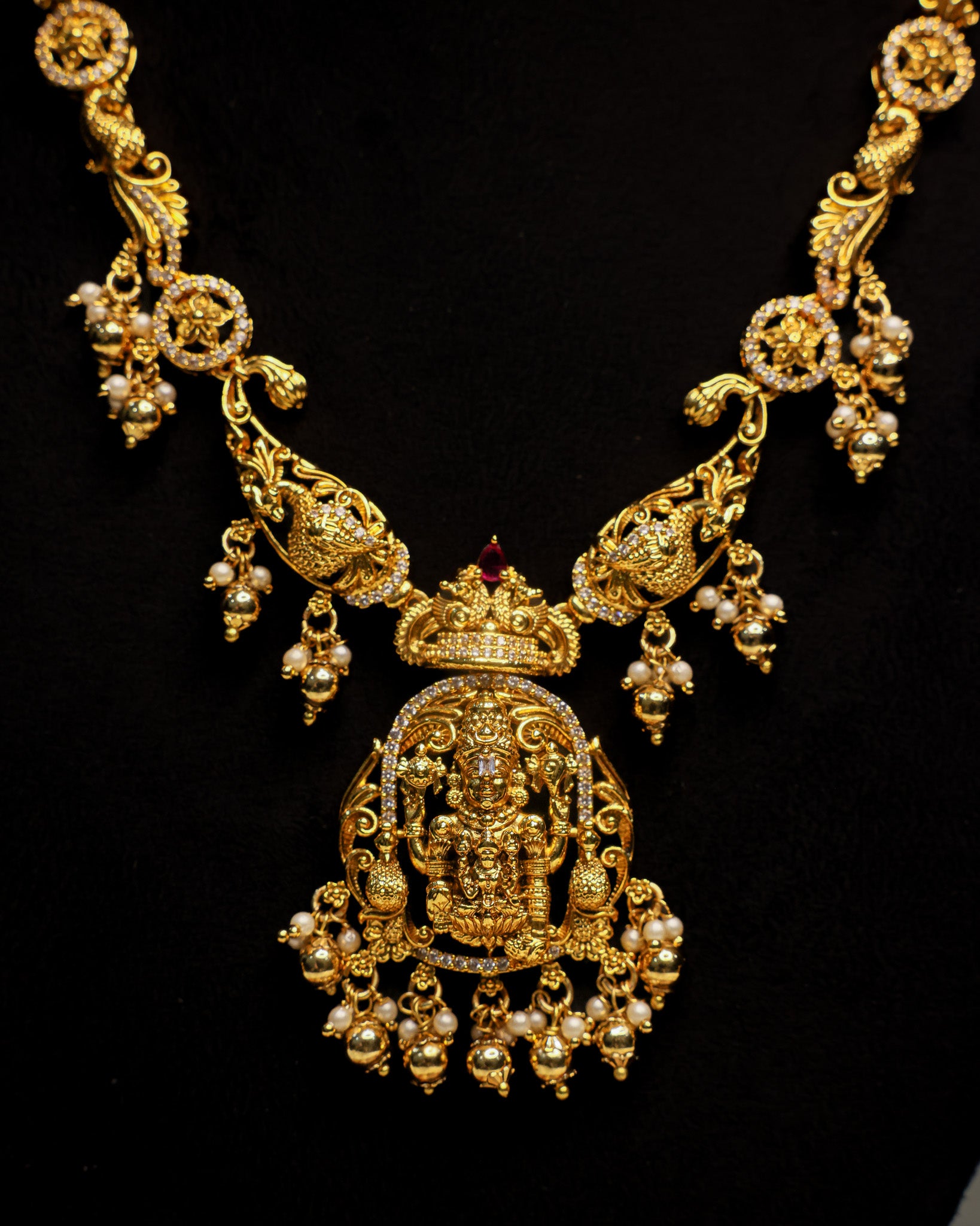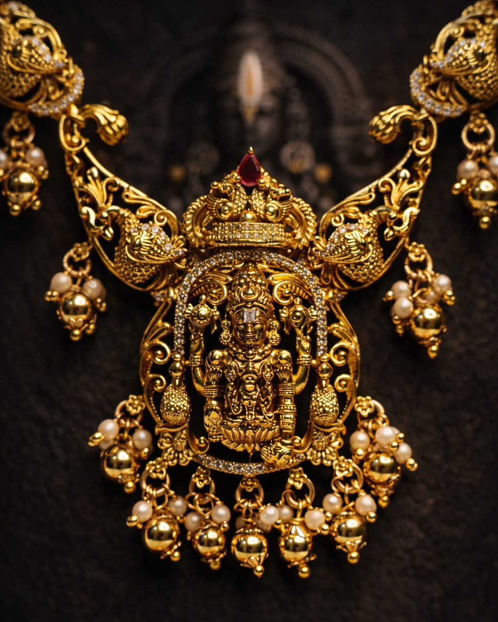 The Sri Srinivasa Anugraha Haaram is a sacred masterpiece inspired by Lord Venkateswara Swami of Tirumala, crafted to embody divine grace, prosperity, and timeless devotion.