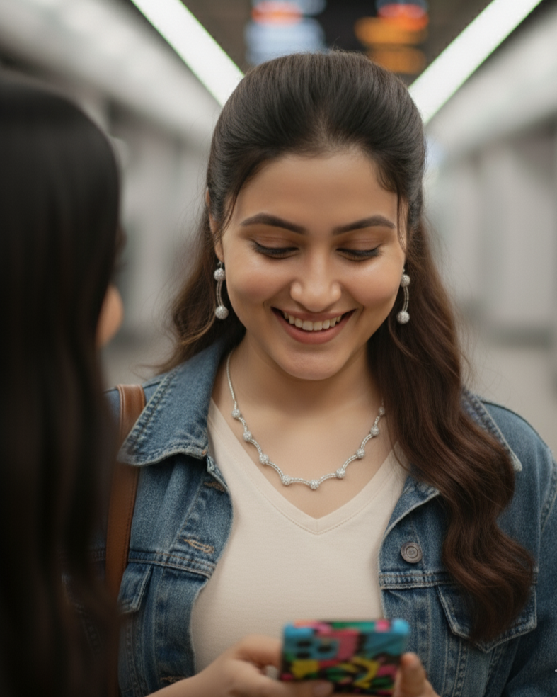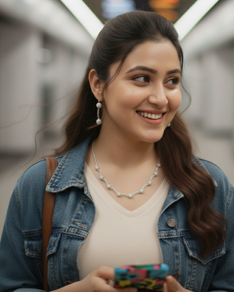 Its minimalist silver spheres and gentle sparkle bring a soft glow to your everyday style — perfectly balancing grace and confidence.