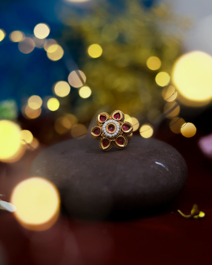 Suwarnikaa's Heritage Pearl Ring Gold Plated with stones Brass Finger Ring
