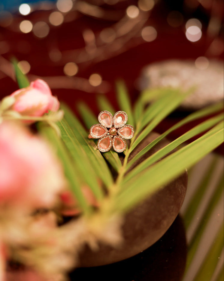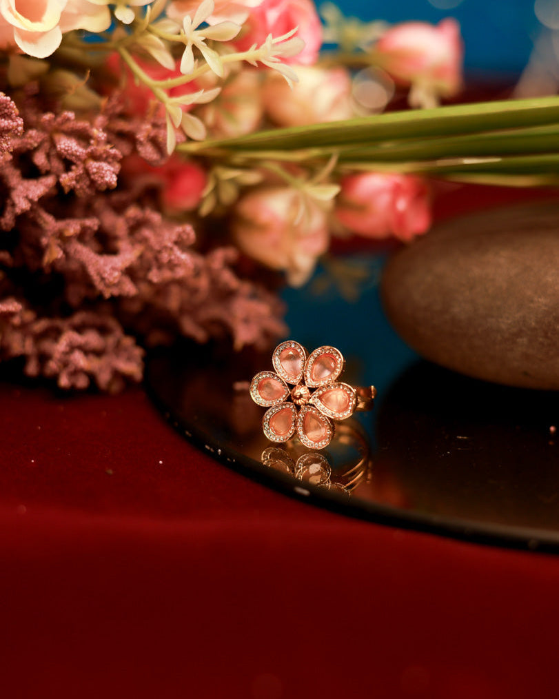 Suwarnikaa's Jade Petal Ring Gold Plated with stones Brass Finger Ring